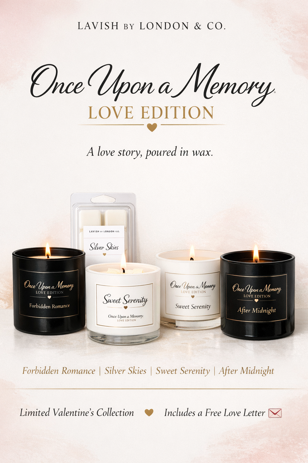 Once Upon a Memory: Love Edition is a curated candle and wax melt collection designed to feel like a love story, soft, sensual, nostalgic, and unforgettable.